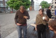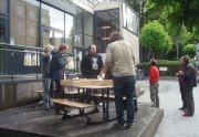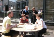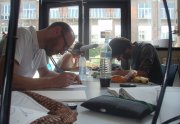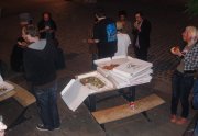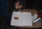Ca y est,les pizzas vont bientôt débouler sur l’avenue Héger et y a rien à dire, le moment des pizzas, c’est un moment charnière des 24h. D’abord parce que c’est le moment de la pause collective, où personne n’échappe à la question :"et toi,t’en es où ?". Automatiquement une prise de conscience se fait et là, la situation n’est pas du tout la même pour chacun. Après 8 heures de boulot, à un tiers de l’épreuve et devant la terrible nuit qui s’avance, il y a ceux qui sont déjà bien avancés (7 à 9 pages) et qui ne doutent pas de l’issue heureuse de l’événement. Mais il y a aussi ceux qui sont bien avancés...et qui stressent quand même. Il y a ceux qui ne sont pas nécessairement bien avancés mais qui montent en puissance, qui tiennent une idée, un style graphique rapide et qui iront jusqu’au bout, sans trop de souffrances. Y a les insouciants aussi bien sûr qui, peu importe leur niveau d’avancement, ne stresseront jamais vraiment.Et puis il y a ceux qui...ceux qui, après 8h, se demandent encore quelle forme va prendre leur histoire, s’ils vont travailler en noir et blanc ou en couleurs, s’ils auraient pas mieux fait de faire de l’animation que de la BD ou l’inverse...bref ceux qui galèrent et pour qui la pizza aura un goût différent. La 4 Saisons n’aura pas trop de goût, la prosciutto goûtera la Calzone...