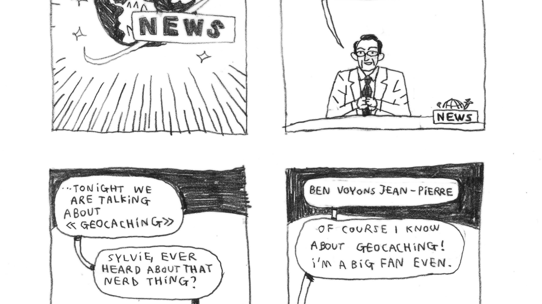 #Science fiction#HumourTonight a very unique coverage : "Geocaching a peculiar hobby" by Stephanie Mallard is airing on the news Channel, presented by (…)