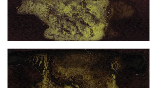 Seconde expérience de bd abstraite (septembre 2009), graduelle mais plutôt cacochromique d’ailleurs. (Fait double-page par double-page...)