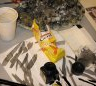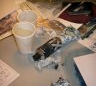 Des tables,des tables,des tables et puis des pinceaux,de la peinture,de la couleur,des ciseaux,et de la peinture et de vieux mouchoirs dégueulasses,remplis de peinture et de morve,de peinture,et des gobelets remplis de peinture,en veux-tu en voilà,et puis des biscuits.