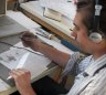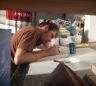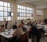 Assis dans les escaliers, Cyprien a « un ptit coup de barre ». Joanna et Albert sont partis prendre l’air. C’est qu’il commence à faire vraiment chaud dans l’atelier, avec la lumière du soir. Avec ça, ça sent les pieds (Bulu et Christophe ont enlevé leurs chaussettes). Ah oui, on a oublié de dire que Christophe Poot, boulot fini, est arrivé il y a peu. Il a filé rapido à sa table à dessin. Abdel fait des blagues et distrait les copains. Garène fait coucou à la webcam, elle dit « merci Laurence ». David et Rémi se battent. M. Pimpant dessine de très beaux oiseaux. Singeon envoie des nouvelles de Paris, il en est à 10 pages et il part piqueniquer.