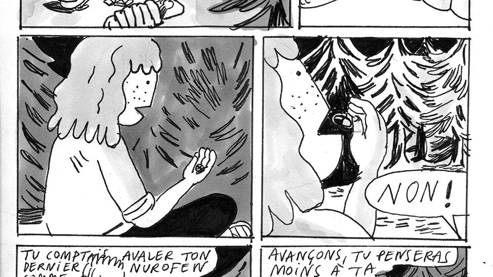 On est lent. Pas eu le temps de faire les pages définitives. C’est le storyboard/crayonné fait lors du workshop en double 2016.Avec amour et sans caféine et avec la grande Aude Bourhis.