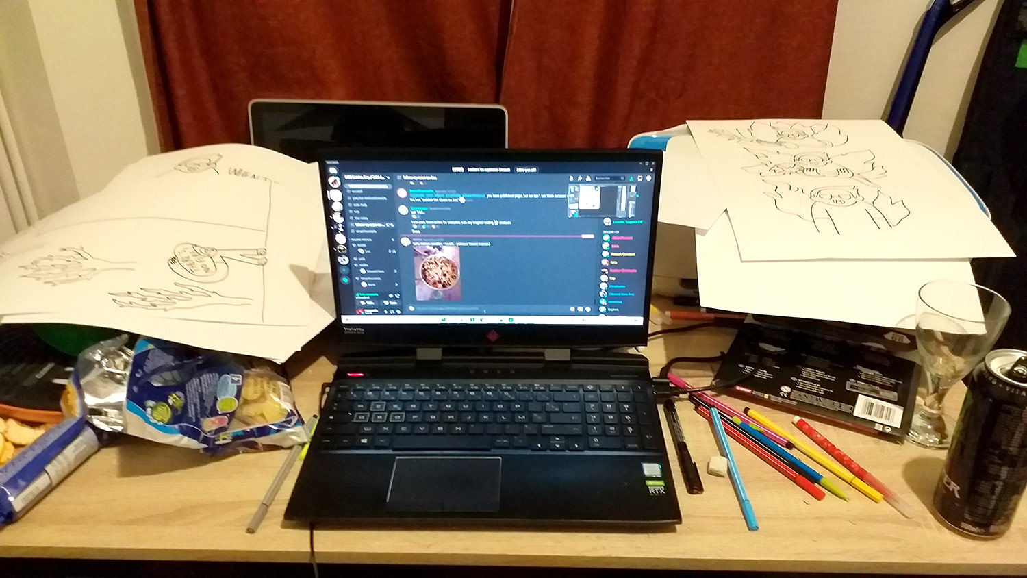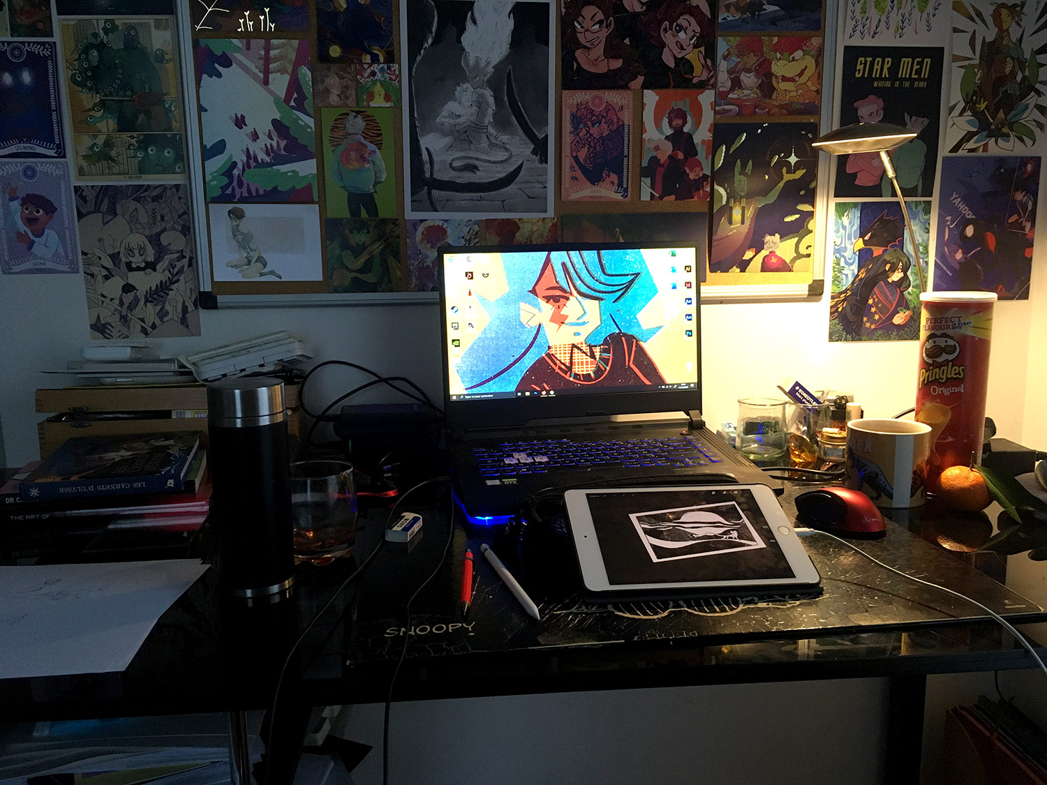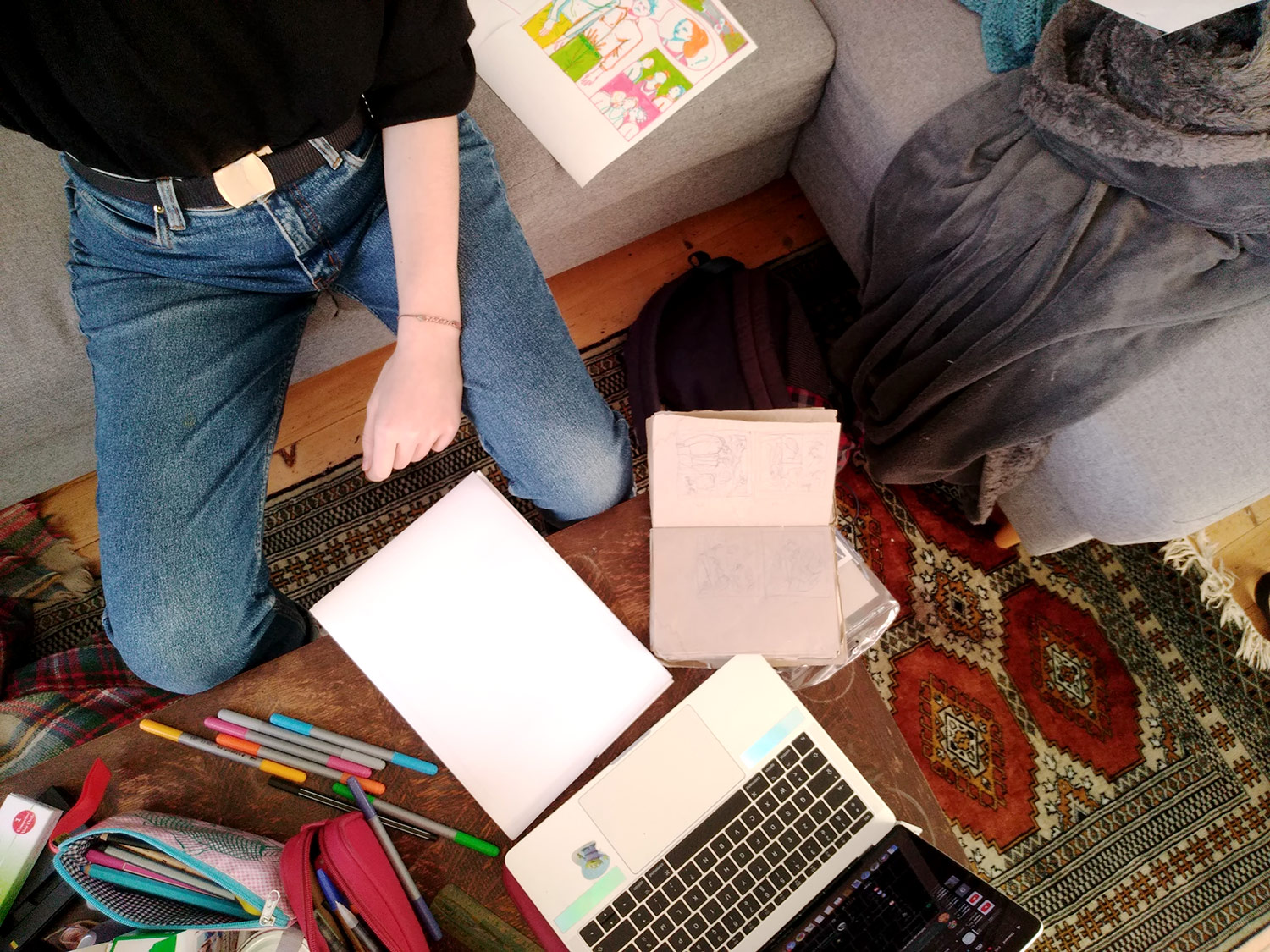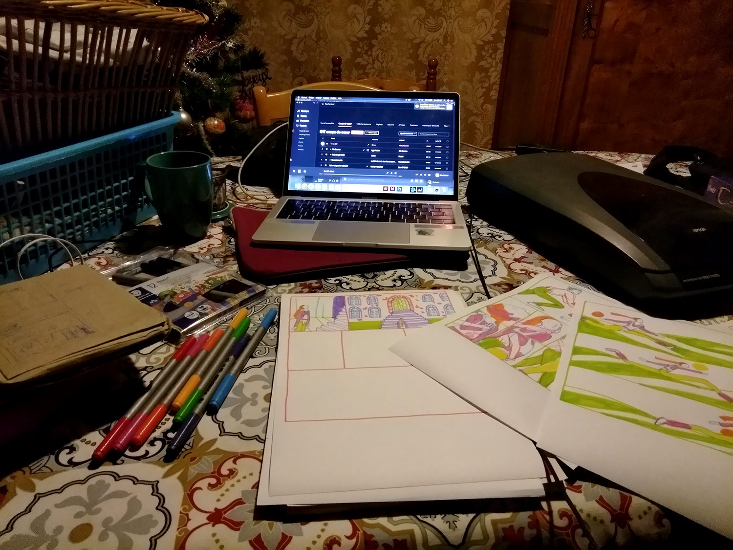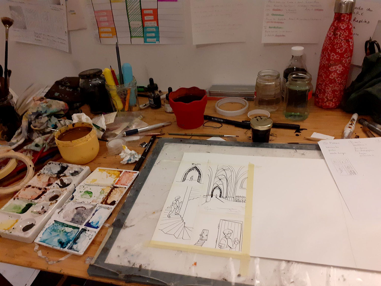 Quelques photos des espaces de travail des auteur.trice.s qui bossent ce moment d’arrache pied !