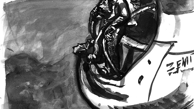 Omar Khouri was born in London, England, in 1978, but grew up in Lebanon. He studied illustration in Massachusetts College of Art in Boston. After acquiring a Bachelor of Fine Art. He now lives in Beirut where he works on a variety of projects that span many mediums and art forms, including print, theater, film, and music. He has also had three exhibitions of his paintings in Beirut, as well as two in New York. Despite the wide variety of application, his work is always grounded in the pursuit of the Portrait through the utilization and manipulation of the nuances and subtleties of Time in sequential imagery. His latest projects include Samandal comics magazine, of which he is co-founder, co-editor and a contributing artist.