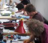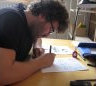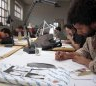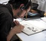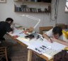 Albert Splouf tente de réanimer son GSM après avoir dessiné un superbe plan des lieux. Laurent Dandoy répond au sien (de GSM) : « Je suis occupé là ! » puis quitte sa table pour dessiner dans le canapé. David Libens a déjà fait six planches. Joanna Lorho cherche l’inspiration à la fenêtre. Max dessine des skateurs. Louis Vanardois découpe, découpe. Olive Booger écrit des lignes et des lignes. Alex de Moté philosophe et google des Goldarak : « Je connais pas le générique par cœur », s’excuse-t-il. Les klaxons d’un mariage brise le silence terrible de l’atelier, mais on continue à chuchoter, à murmurer.