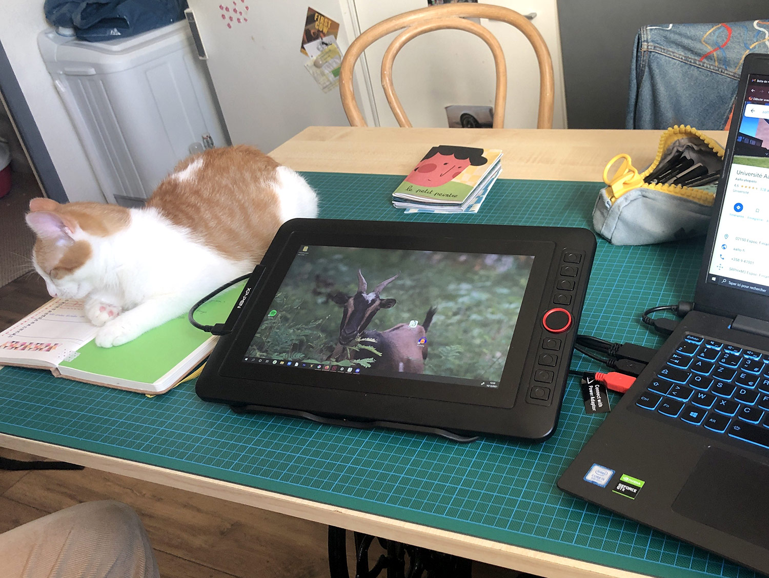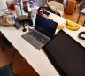 De quoi manger avant de démarrer et des bureaux qui se mettent en état de marche, voilà quelques photos avant le départ !