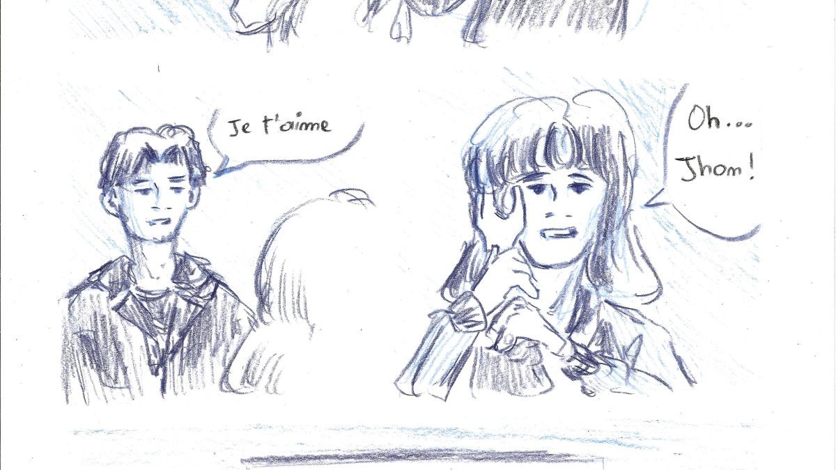 histoire griffonnée sur un carnet devant des reportages anxiogènes