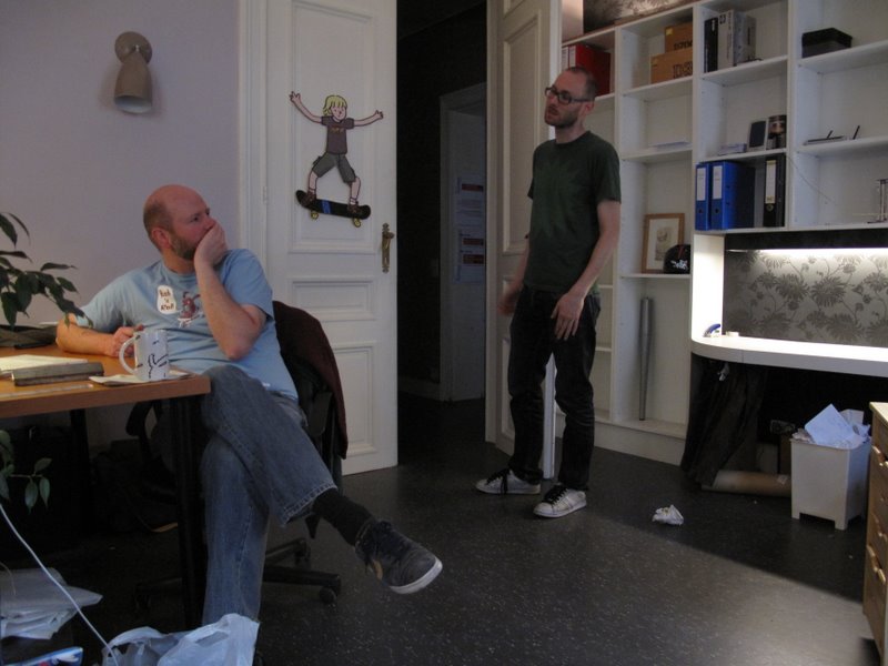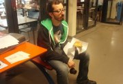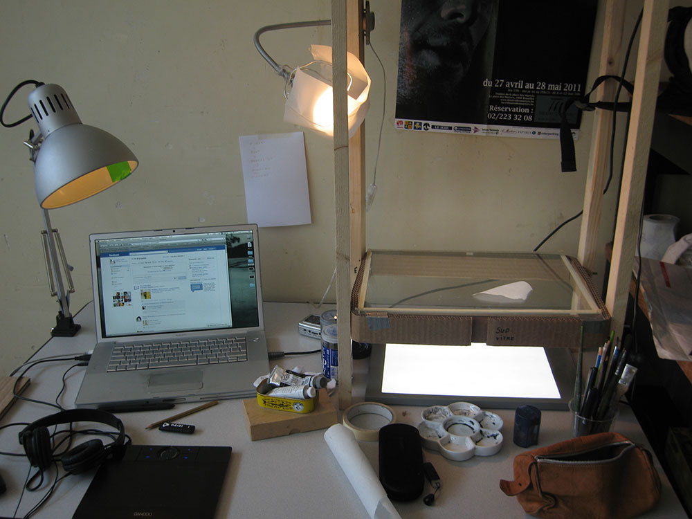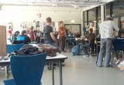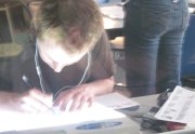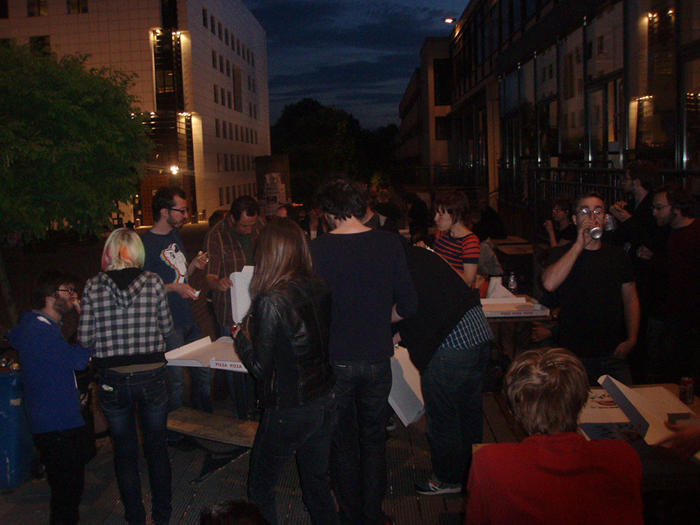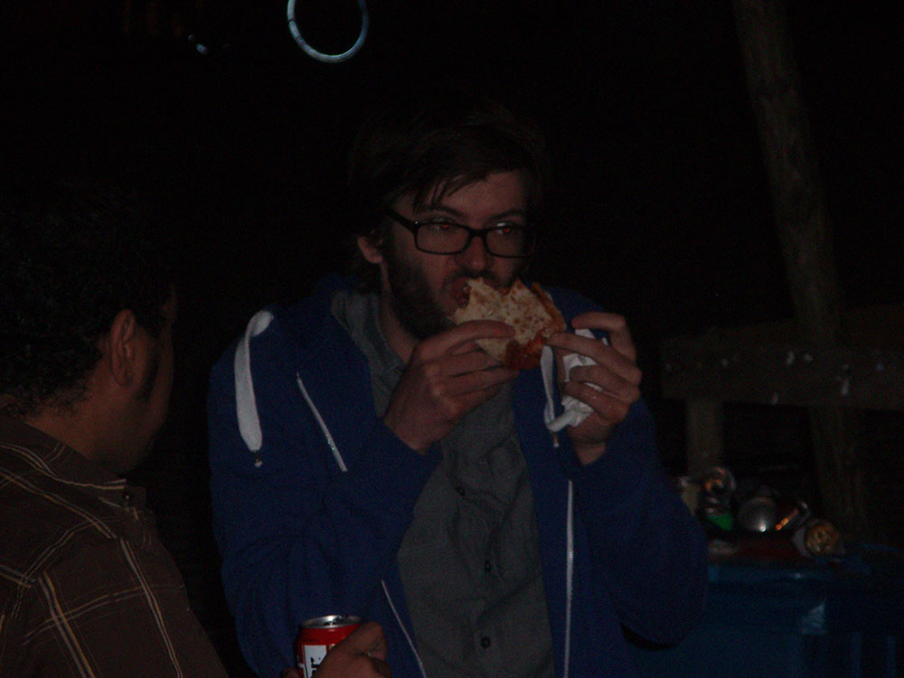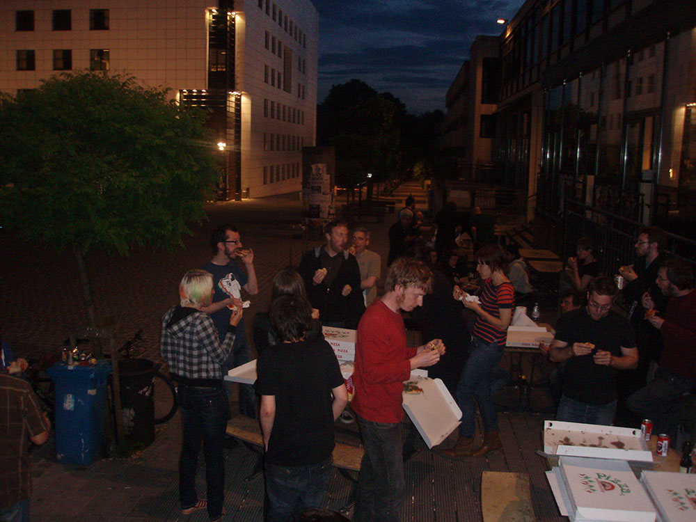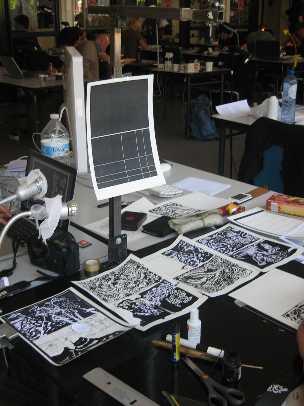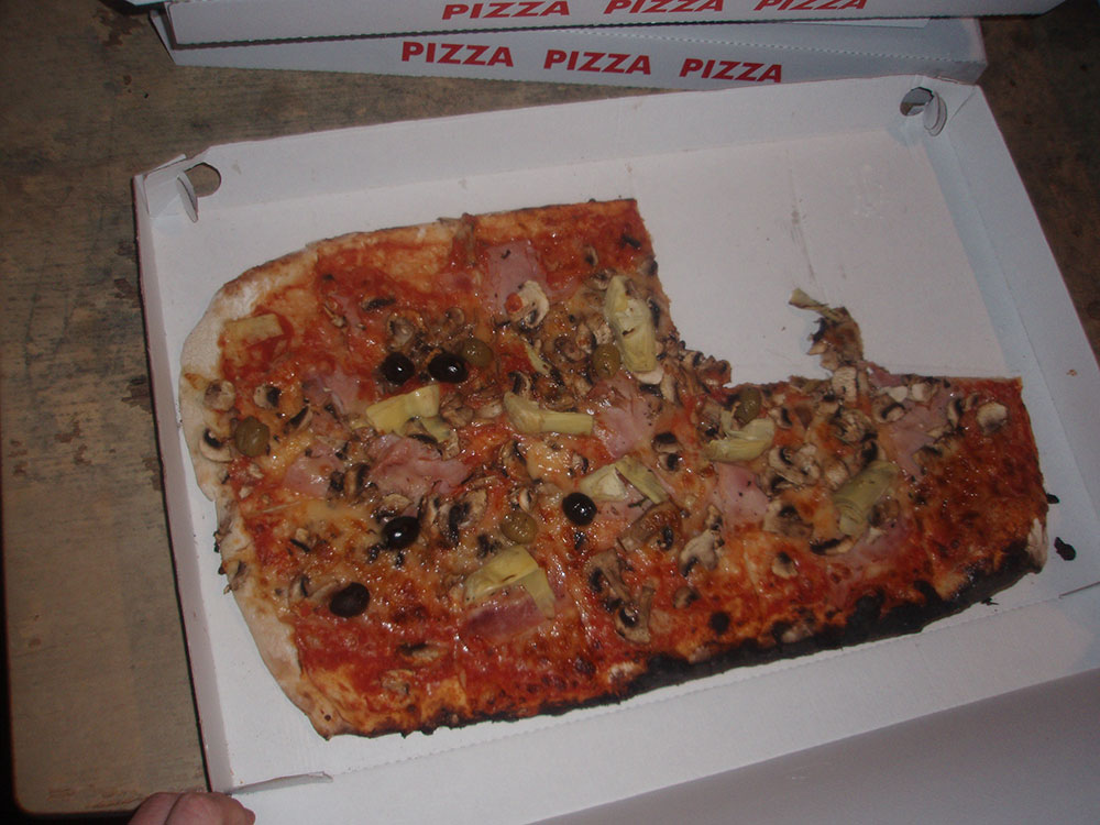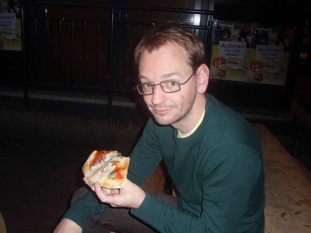 Ca y est,les pizzas vont bientôt débouler sur l’avenue Héger et y a rien à dire, le moment des pizzas, c’est un moment charnière des 24h. D’abord parce que c’est le moment de la pause collective, où personne n’échappe à la question :"et toi,t’en es où ?". Automatiquement une prise de conscience se fait et là, la situation n’est pas du tout la même pour chacun. Après 8 heures de boulot, à un tiers de l’épreuve et devant la terrible nuit qui s’avance, il y a ceux qui sont déjà bien avancés (7 à 9 pages) et qui ne doutent pas de l’issue heureuse de l’événement. Mais il y a aussi ceux qui sont bien avancés...et qui stressent quand même. Il y a ceux qui ne sont pas nécessairement bien avancés mais qui montent en puissance, qui tiennent une idée, un style graphique rapide et qui iront jusqu’au bout, sans trop de souffrances. Y a les insouciants aussi bien sûr qui, peu importe leur niveau d’avancement, ne stresseront jamais vraiment.Et puis il y a ceux qui...ceux qui, après 8h, se demandent encore quelle forme va prendre leur histoire, s’ils vont travailler en noir et blanc ou en couleurs, s’ils auraient pas mieux fait de faire de l’animation que de la BD ou l’inverse...bref ceux qui galèrent et pour qui la pizza aura un goût différent. La 4 Saisons n’aura pas trop de goût, la prosciutto goûtera la Calzone...