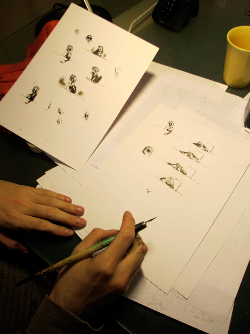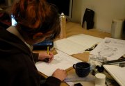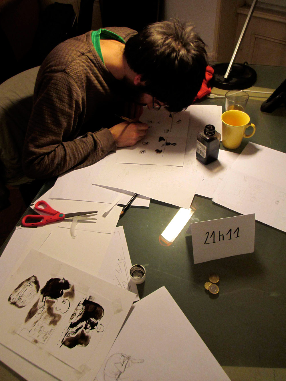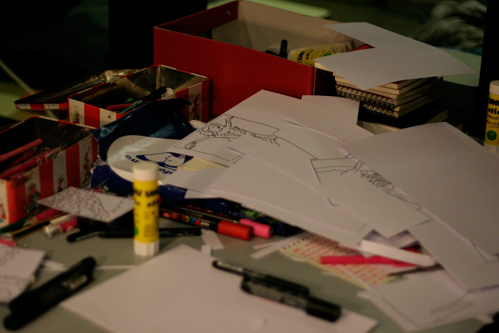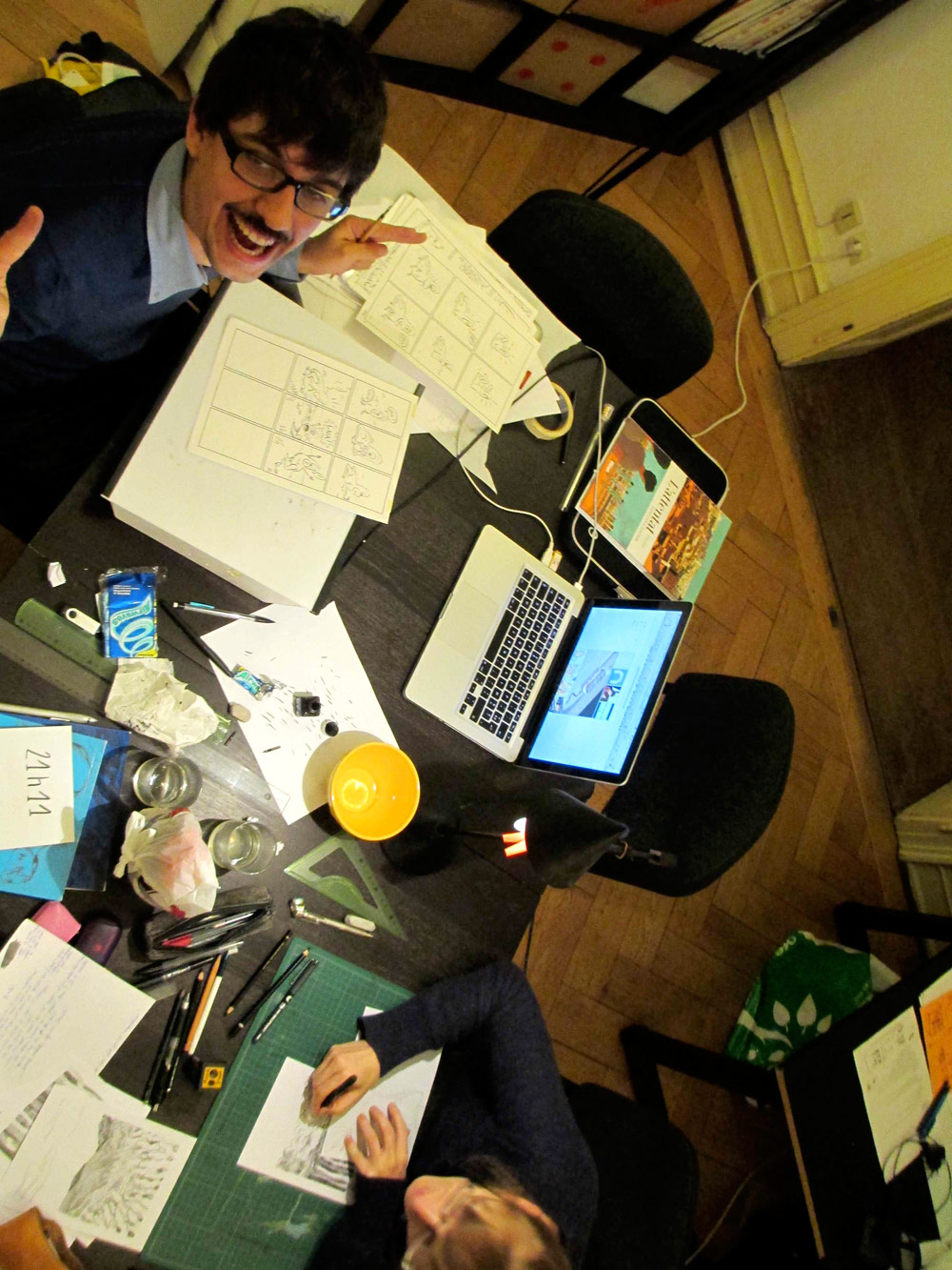Certains commencent à finir le planches, d’autres commencent à vraiment fatiguer... Après 18h de dessin personne n’abandonne !