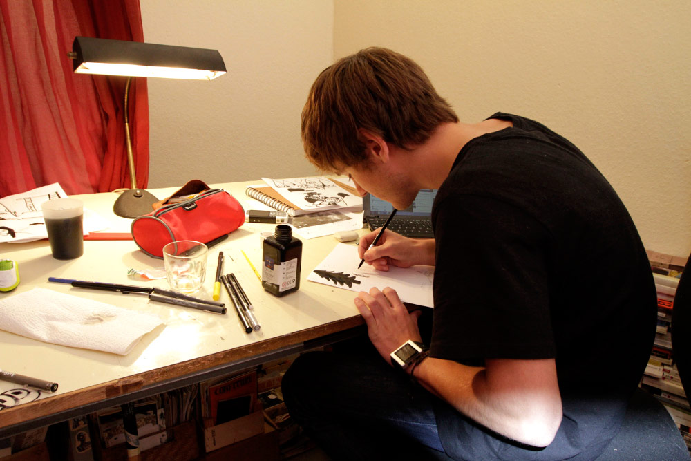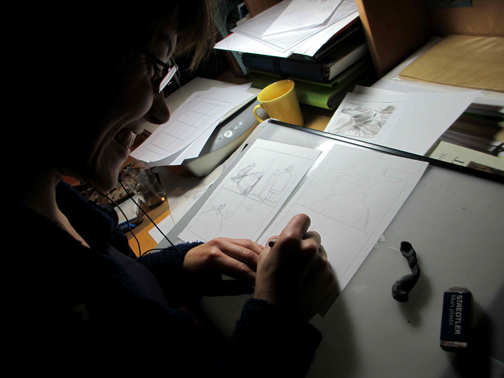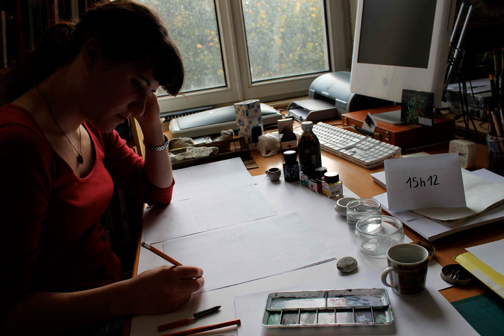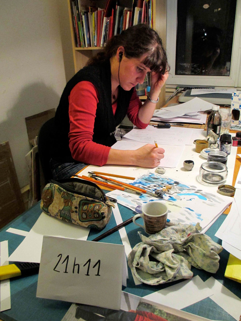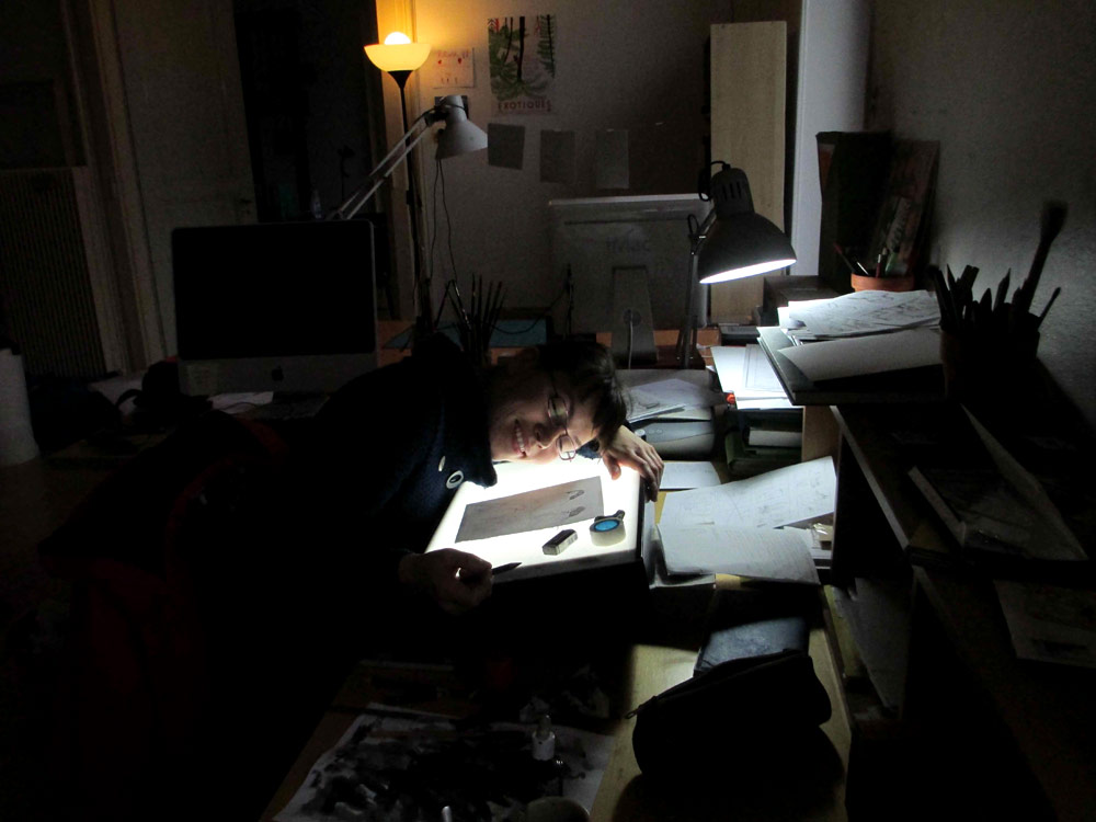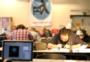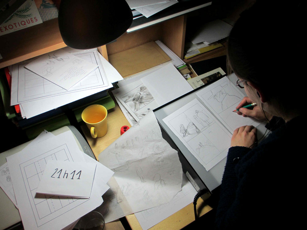 Certains commencent à finir le planches, d’autres commencent à vraiment fatiguer... Après 18h de dessin personne n’abandonne !