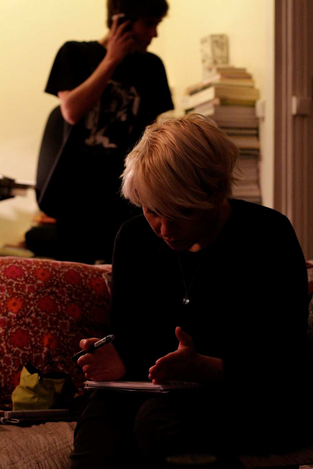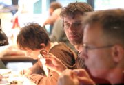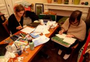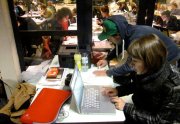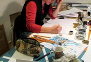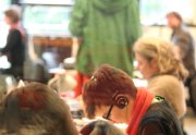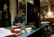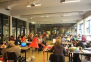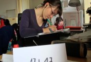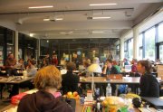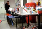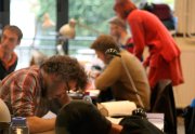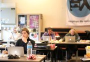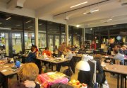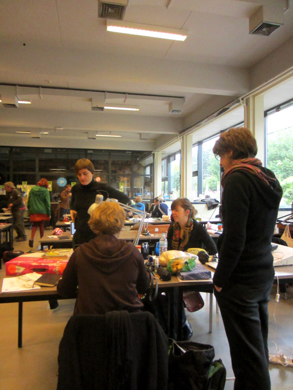 Un sentiment lorsqu’on passe dans la salle, c’est que les auteurs ont pris leur marques, les tables sont investies, les paquets de gâteaux ont été ouverts, les feuilles, les pots et les crayons sont étalés, la salle a pris vie ( mais toujours de manière studieuse...).