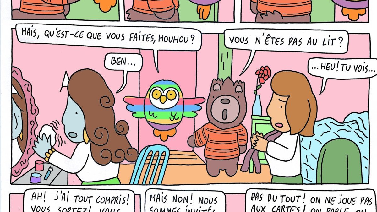 Badly Drawn Girls is a series of comics gag. Me & Myself are arguing all of the time in a broken english. Even though I used BDG as a comic diary while I am abroad in the U.S.A., I tend more and more to believe that they actually symbolize the rupture between my french and english selves. The language gap in the comics is actually the logical gap of my inner self. Everything get solved in the language. It is a really talkative comic.
