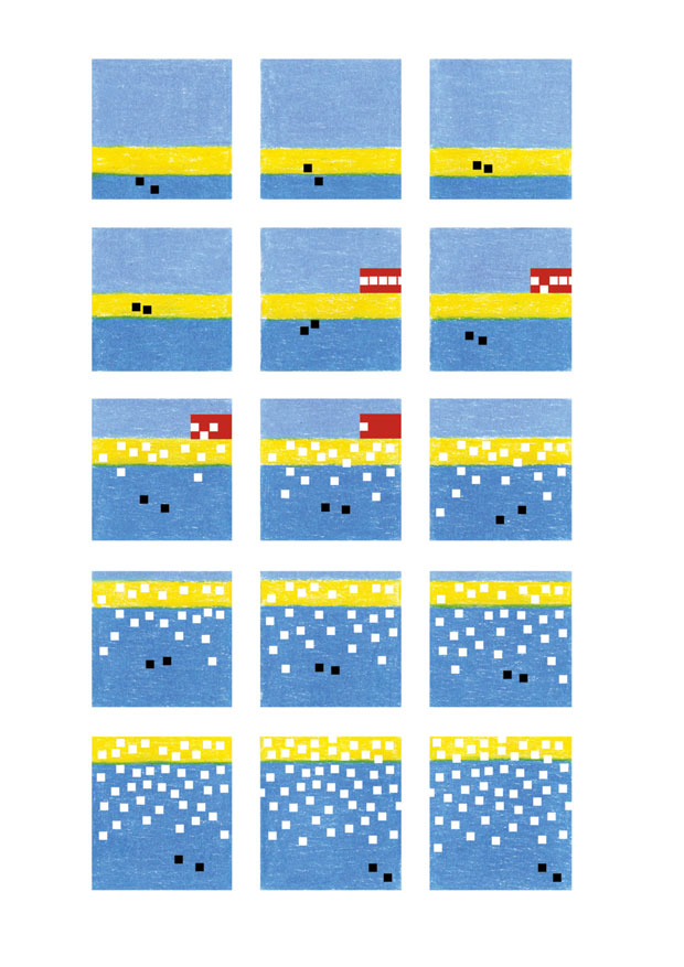 Mon premier essai de bd abstraite (août 2008), diptyque paru dans Plots.