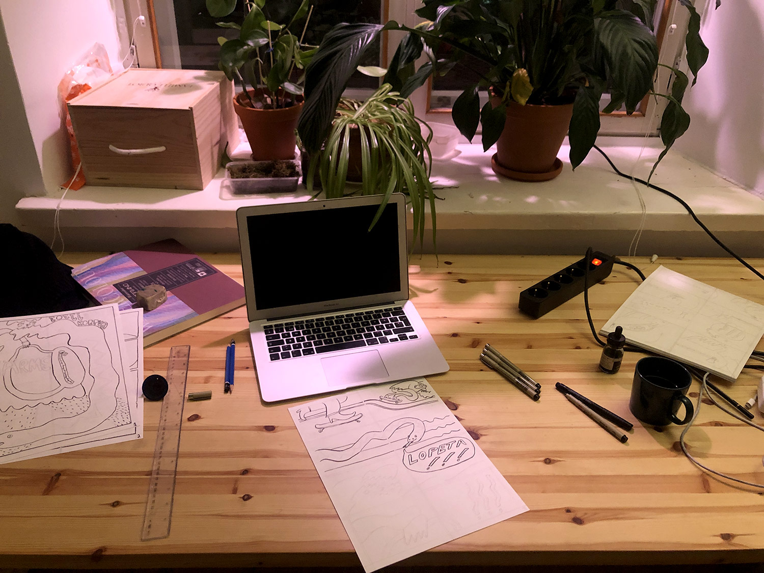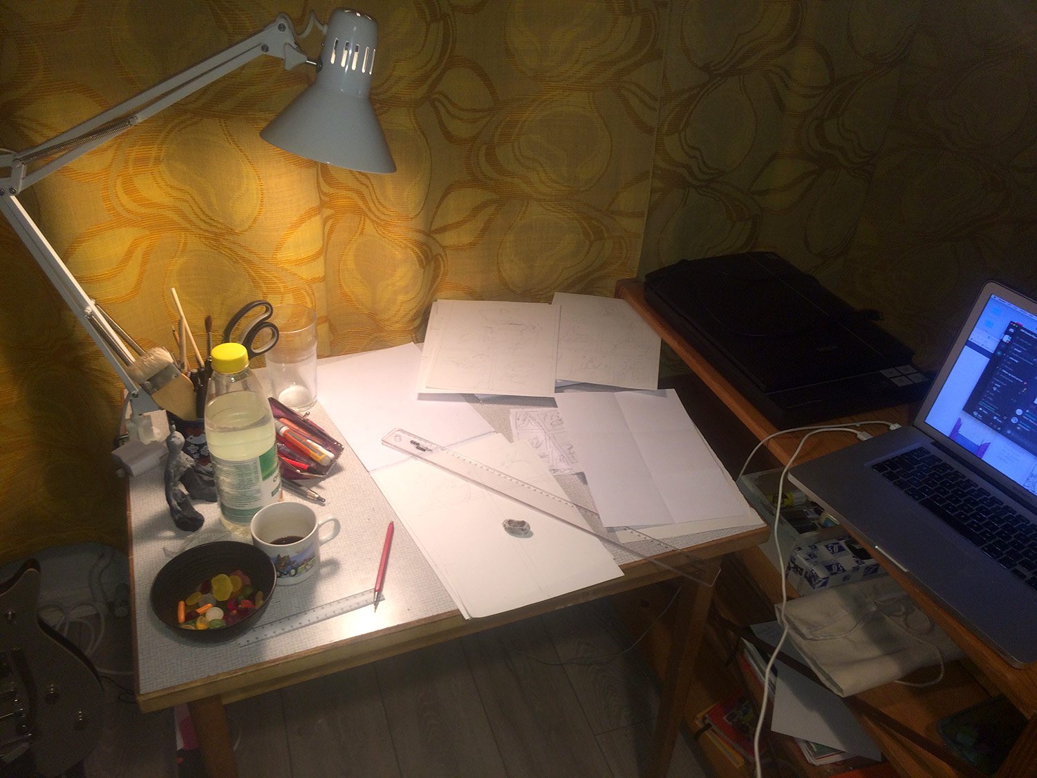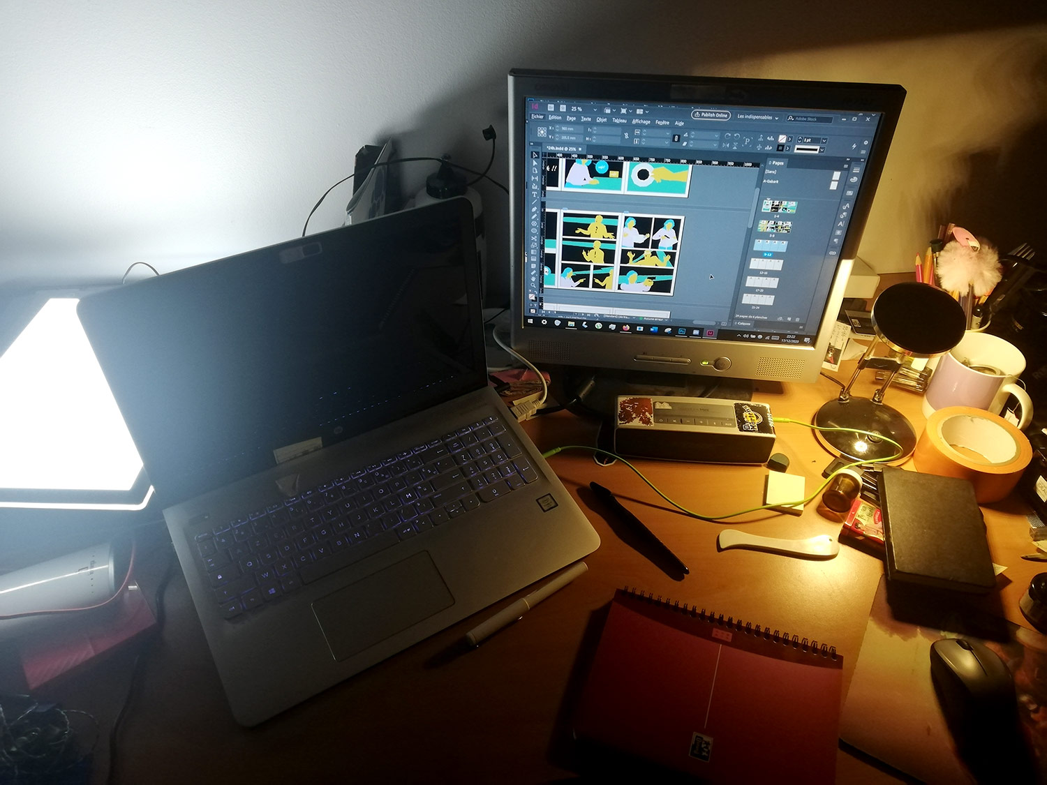 Quelques photos des espaces de travail des auteur.trice.s qui bossent ce moment d’arrache pied !