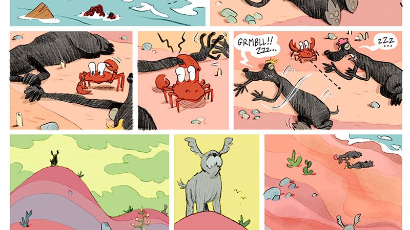 La suite des aventures de Hum ? et Wouaf ! après Affamés. Toujours des misères pour ces pauvres pèlerins, et la découverte d’une mine extraordinaire. (En couleur jusqu’à la page 16, ensuite c’est en chantier. Peut-être des versions couleurs définitives plus tard...)