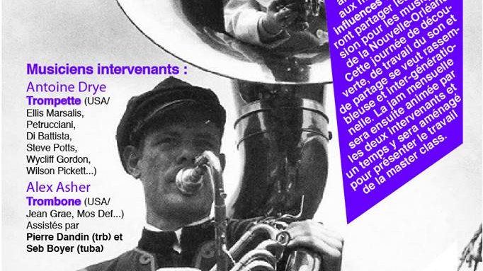 Croquis réalisés à la porte de mon atelier pendant une masterclasse brass band avec le tromboniste Alex Asher.