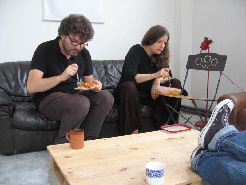 Une voiture de Tournai, quelques casiers de bières, des provisions de chocolat, des cases pré-crayonnées, des remplissages d’Ipod, des enfilages de sandales et beaucoup, beaucoup de café... Il est midi, on se prépare comme on peut, alors qu’il crache une petite pluie au dessus de Bruxelles.