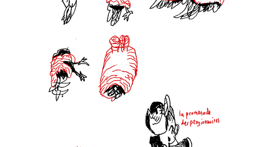 J’ai dessiné un album paru chez La Cinquième Couche ( "de la fenêtre le trompe l’oeil" ), participé à NOS RESTES dans leurs 2 livres "Nos Restes" et "Temps Morts". Fait 3 flip books chez FLBLB ( "j’ai beau faire je ne vais jamais bien loin ", " j’ai une autre tête sous le bras ", "Délices/palpite" avec Barbara Malleville ). Un bouquin chez Cambourakis sur le feu. je fais du film d’animation pour changer de la bd, à moins que ce ne soit l’inverse.