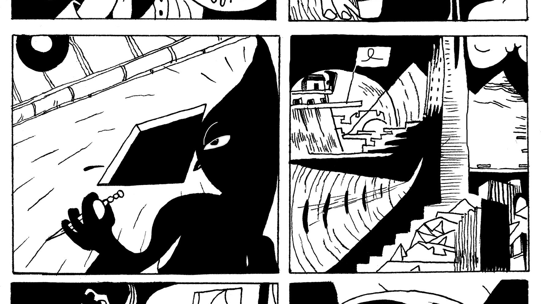 #Muet#Drame#AbstraitCourte histoire imposée en Noir et Blanc et en 5 planches pour la revue PSORIASIS (voir Hicham Amrani...)
