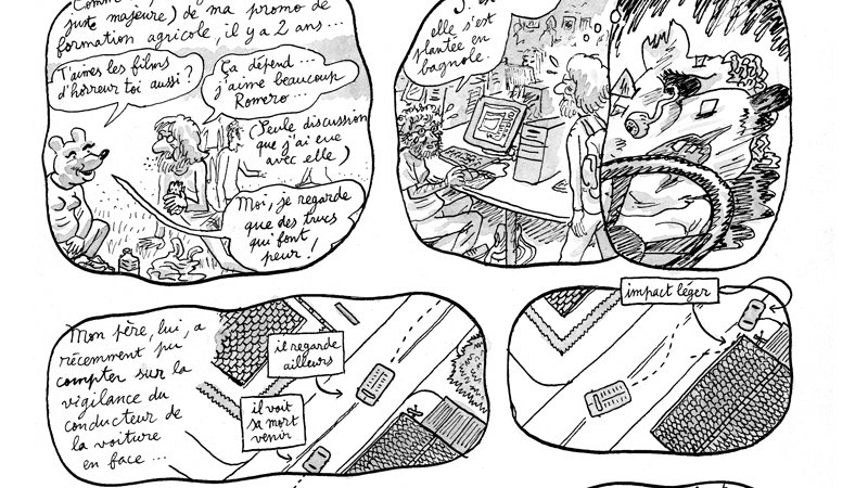Balthazar, dit Zazar, est un petit paysan dans les Cévennes. Entre 2012 et 2018 il a fait des chroniques en BD sur son activité à la ferme qu’il reprenait à la suite de ses parents. Il y a souvent cédé à la digression politique, sociétale... C’est ce que vous pouvez lire maintenant sur Grandpapier. Ça s’appelle CARNET DE CAMBROUSSE. (commencez par le prologue et le plan du domaine, en bas de page.)
